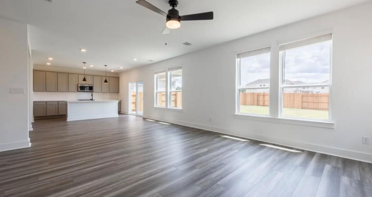 The Beau plan combines functionality with comfort, featuring 2,089 square feet across two stories. This spacious design includes three bedrooms, two and one-half bathrooms and an upstairs loft for added flexibility. The open-concept main floor and private primary suite create a functional and comfortable living space. Additional features on the home include spray foam insulation and pre-plumbing for water softener, full sod with full smart sprinkler system. Convenient onsite elementary school, amenities including luxury pool, parks, outdoor kitchen, club houses all in a hill country setting.
