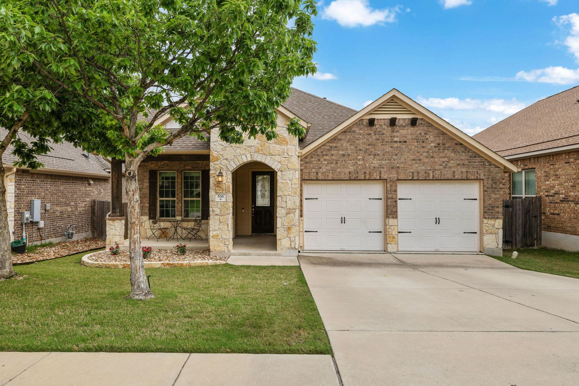 This charming single-story home offers 2,064 square feet of well-designed living space on a generous 0.23-acre lot. The exterior features a classic combination of stone and brick with a composite shingle roof and a two-car garage. Inside, the functional floor plan includes three bedrooms, two bathrooms, and a dedicated office or study perfect for remote work. The heart of the home is a spacious open living area with tile flooring that flows into the kitchen. The kitchen is equipped with granite countertops, a large center island, and natural gas cooking, while the adjacent dining area provides a comfortable space for meals. The primary suite serves as a private retreat, featuring a tray ceiling with a ceiling fan and an attached bathroom with a double vanity and separate tub and shower. Throughout the home, practical updates include an HVAC system that is only nine months old and energy-efficient Energy Star qualified cooling and heating equipment. Exterior living is a highlight, with a covered back patio overlooking a fenced yard equipped with an in-ground automatic sprinkler system. Located in the growing Leander area, residents enjoy access to community amenities including a pool, playground, and hiking or walking trails. The home is zoned to the highly regarded Leander ISD, specifically Christine Camacho Elementary, Leander Middle School, and Leander High School. With its thoughtful layout and prime location near local schools and parks, this move-in-ready home offers a balance of comfort and convenience.